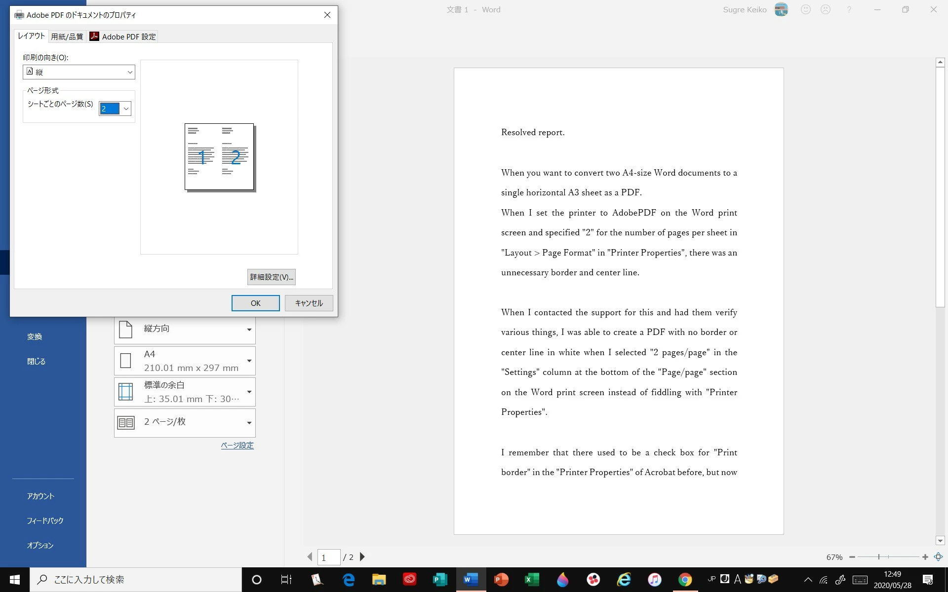 AcrobatでWord文書を2in1(見開き、複数ページを1枚に)でPDF化するときの枠線を消したい(English follows by DeepL)