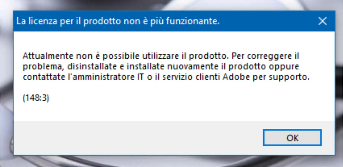 Nel 2009 ho installato Acrobat 9 Pro (regolarmente acquistato e registrato), ha sempre fatto egregiamente il suo lavoro fino ad oggi quando, all’apertura di un Pdf, mi è apparsa la finestra che mi annunciava che: “La licenza per il prodotto non è più funzionante”.