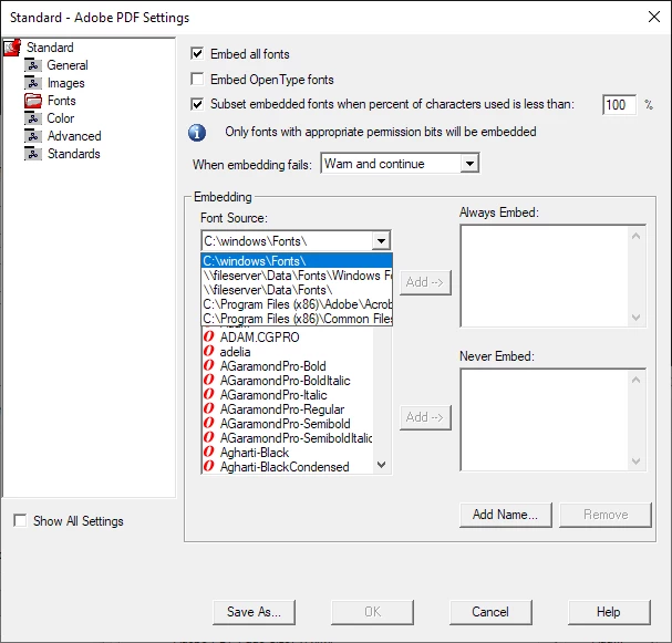 The next problem is I cant seem to tell Distiller not to check those folders, I have removed them from the Distiller program but according to the job options the pdfs are made with those directorys are still being checked and i have no idea how to fix that, any help is welcome, unless you tell me to change the workflow, due to reasons im not gonna get into we have to use the old and terrible "Print to PDF"