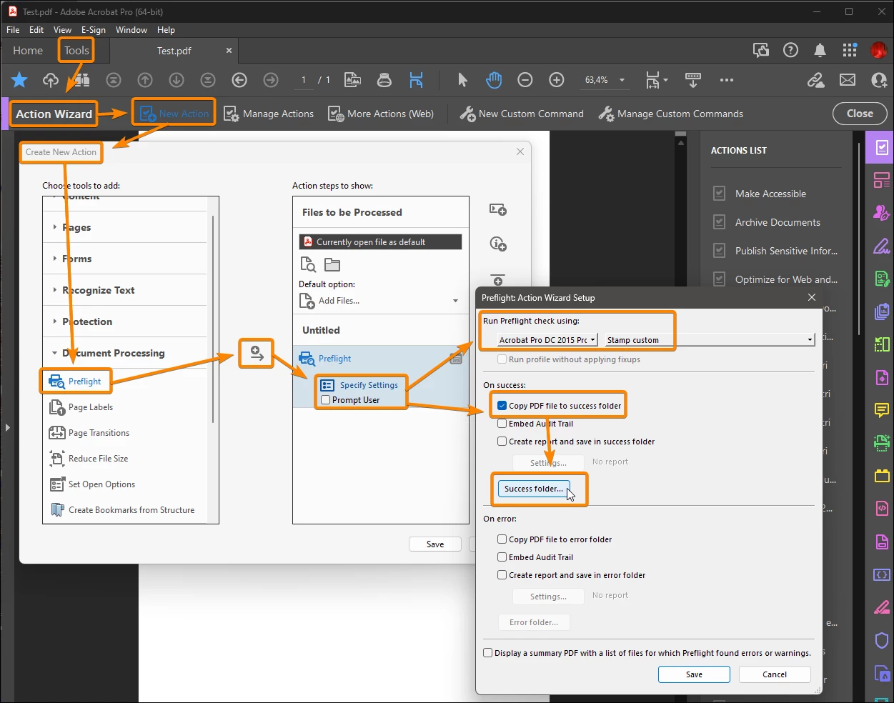 Acrobat batch save PDFs to different folder