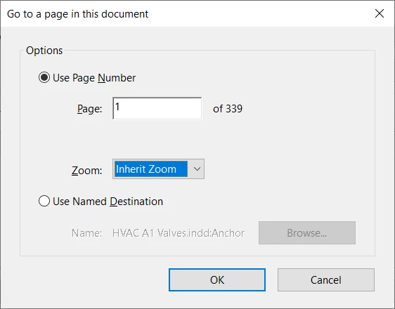 The problem occurs when using those links to navigate through the document, and it only occurs when displaying a two-page spread. In my particular case, when I “Zoom to Page Level” while in two-page display format, the zoom ration is 93.5%. I can navigate through the document using the arrow keys, or the thumbnails and the zoom level stays the same, 93.5%. But if I click on a link, it jumps to the page, but changes the zoom level to 128%, which happens to be the “Zoom to Page Level” for displaying a single page, but I am still in 2 page display mode which is now showing about a page and a half instead of the two-page spread.