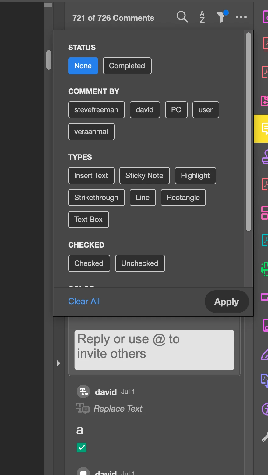 So yesterday, my boss told me to only change the text edits in InDesign and mark the relevant comments by clicking on the checkboxes and send it to him.