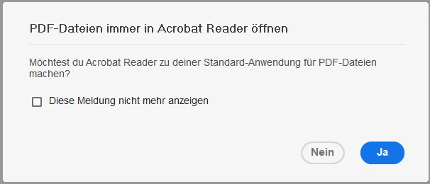 Except that Acrobat seems not to recognize this, because after opening Acrobat, it asks "to set as default".