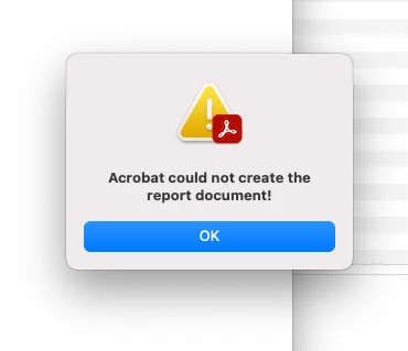 So I have a clean reformatted HD with the latest iOS, installed and updated. Installed InDesign and Acrobat and still getting the error. I use this feature all the time and not sure what else to do. Any ideas?