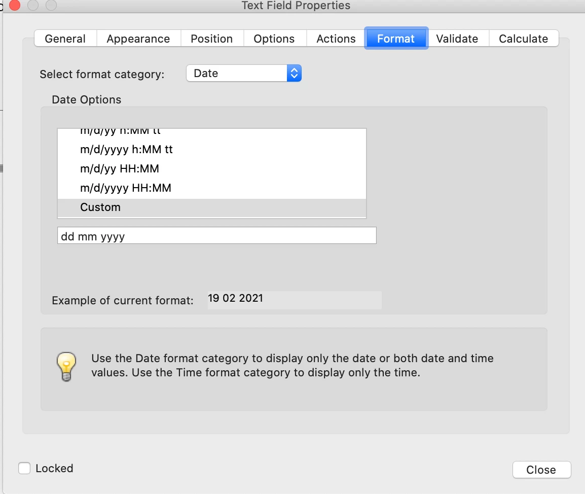 I have multiple date fields to be inserted into a UK based form. The format in UK is DD/MM/YYYY which is not available in the drop down menu. If you make a custom date format to match this, the date picker returns an error when picking a date.