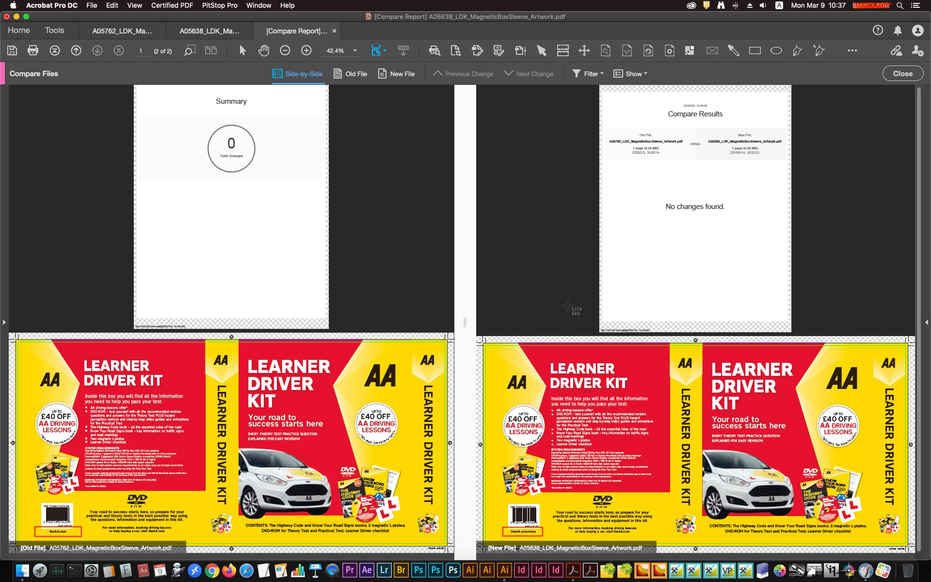 My operation: open these two different PDFs using Acrobat Pro DC -- open the "compare files" function -- compare by default