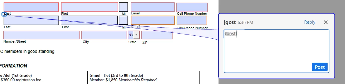 (3) The form arrives and I try to enter data and I get this message as though I were just commenting on the form.