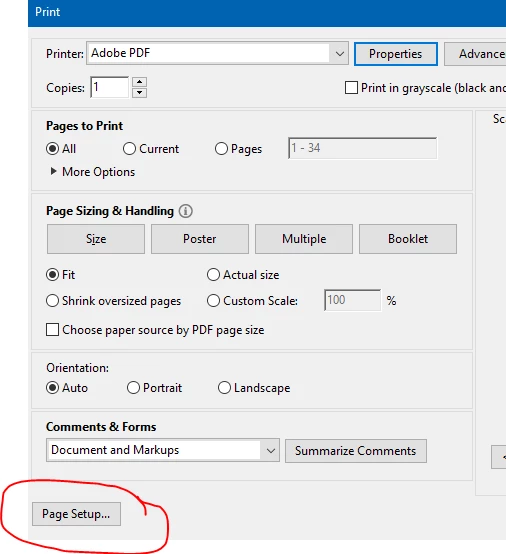 I'm an architect, and print drawings to PDF all of the time, using page sizes Arch D and Arch E. About 2 weeks ago, Acrobat wouldn't print to these sizes anymore. This is happening on multiple computers, from multiple programs, so we get the same failure whether printing directly from Autocad, or when opening an existing pdf in Acrobat and trying to print it to PDF in these page sizes. Smaller page sizes, letter, tabloid, etc. are still working fine. We've uninstalled and reinstalled Acrobat, with no improvement. We're working in Windows 10. Has anyone else experienced this? It's a huge problem for us that we'd love to fix.