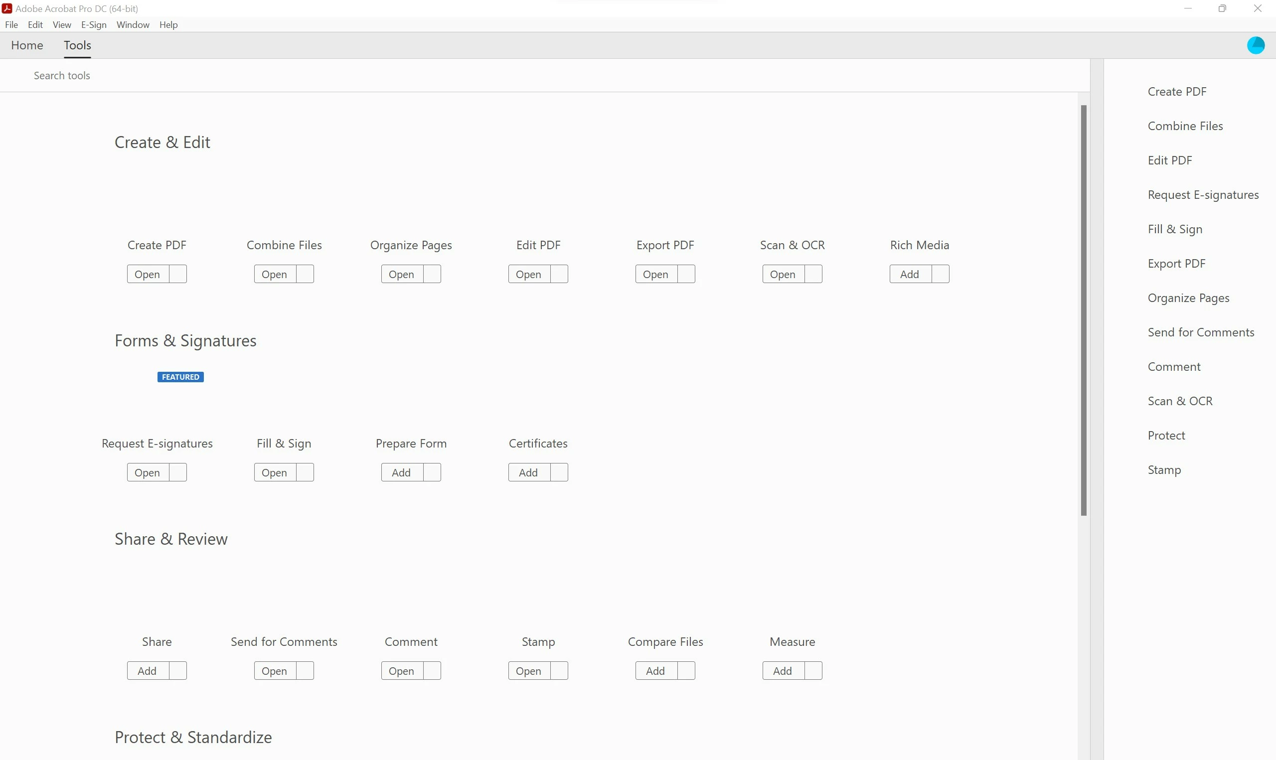 Acrobat DC icon missing in TOOL tab