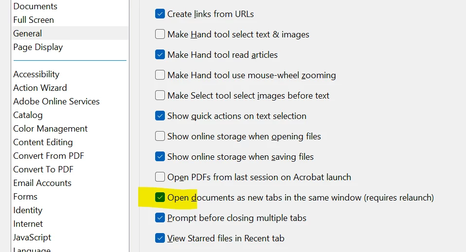 Acrobat DC keep reopen previous document all together