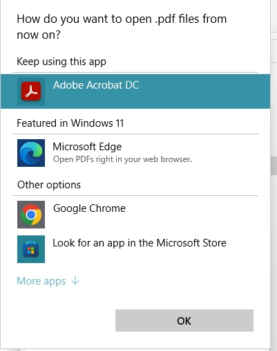 Once you are there, you can select Acrobat Pro DC to set the application as default.