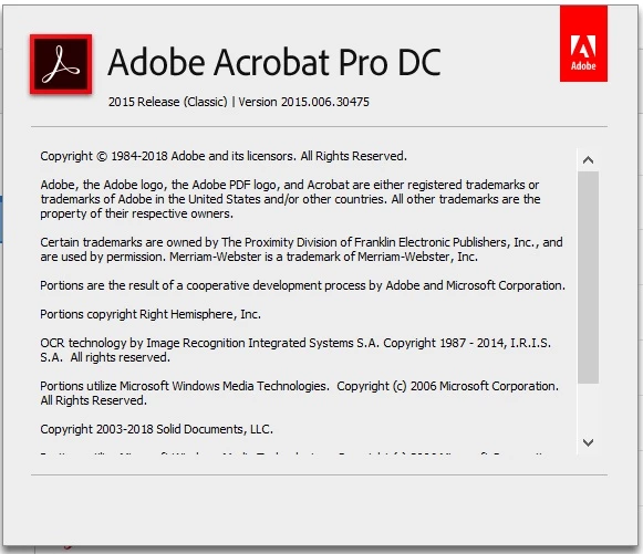 I just purchased Adobe Acrobat DC 2015 Release (classic) version 2015.006.30475