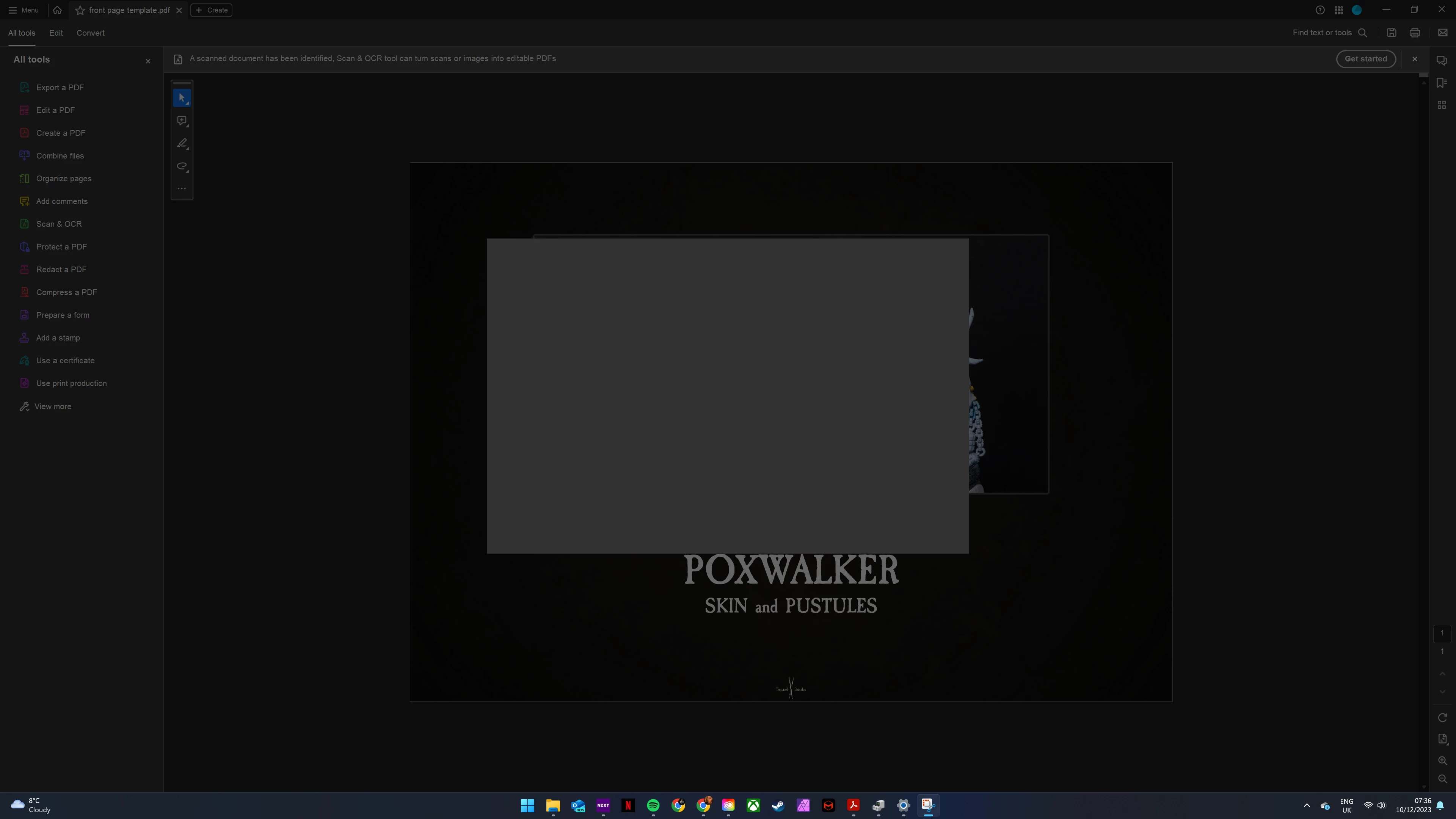 I'm trying to create a PDF using Acrobat. I try to create a PDF, select the image I want to use then hit create. The PDF is created, but a couple of seconds later I get a pop-up window with nothing but a spinning blue circle (screenshot attached). The only way to interact with Acrobat is to end task in Task Manager.