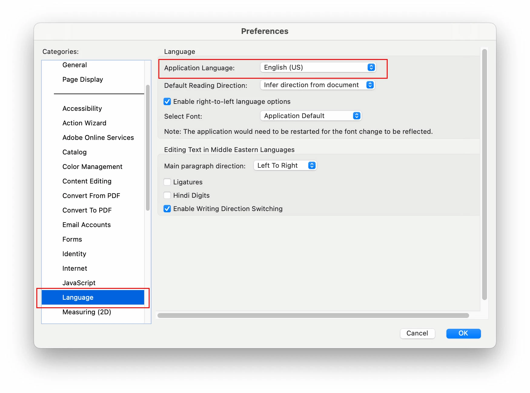Acrobat English installation with Arabic Support