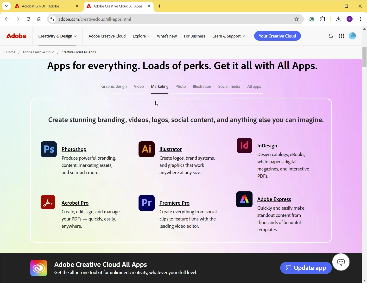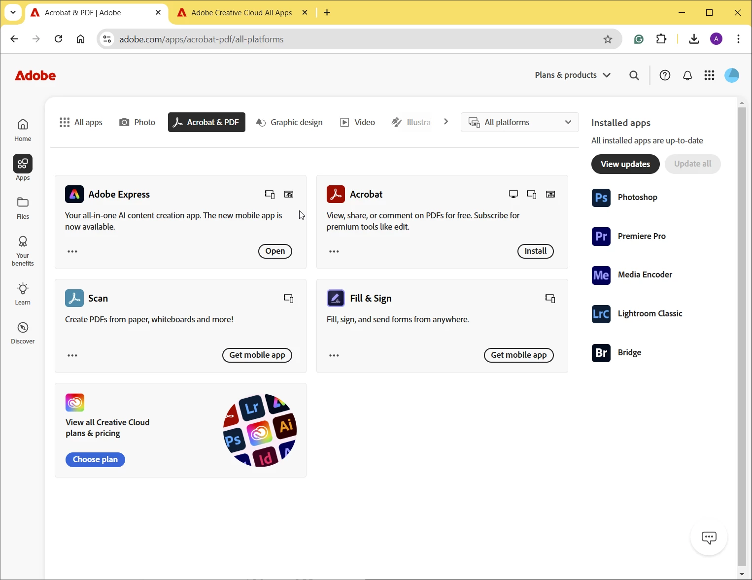 When I change the default PDF viewer, Acrobat asks if I want to change it to Acrobat, so something is loading correctly.