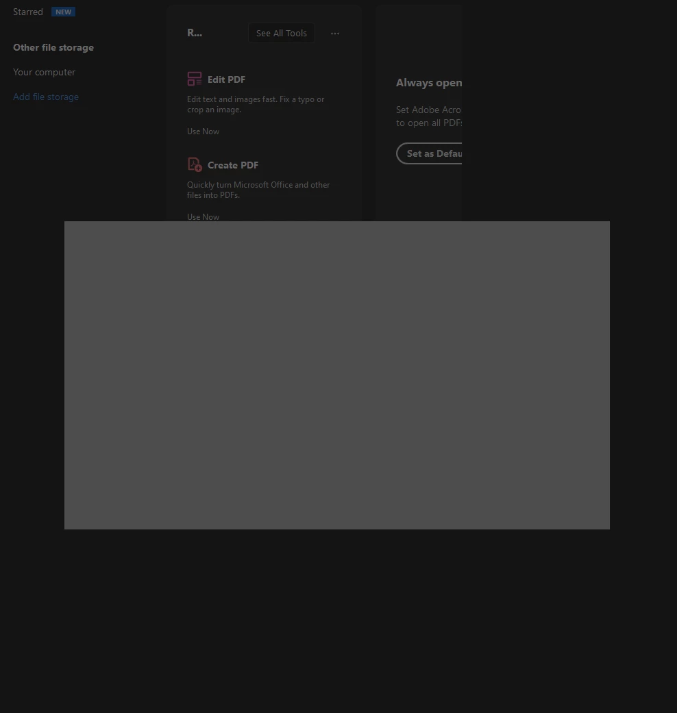 AAndy238712261bhfParticipantForum|Forum|2 years agoJuly 22, 2023QuestionAcrobat frozen on Windows PCForum|Forum|2 years agoJuly 22, 20233 replies834 viewsIt freezes within a few seconds of opening with a gray rectangle with a blue wheel spinning. The tab is frozen; it cannot be moved nor closed. It can only be force quitted trhough task manager.Crash or freezeGeneral troubleshooting