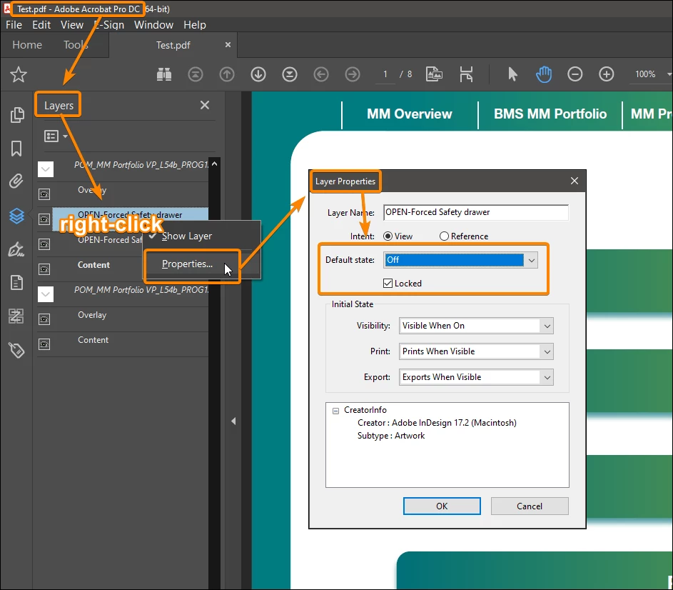 Acrobat Interactive PDF shows hidden layers randomly on opening