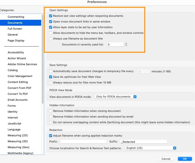 Acrobat is opening the last modification on file if i try opening it from "recent" documents list even though i didn't saved changes before closing. I need to quit and restart the app for it to show me the original or last saved modification on a that file. Basically, if i try opening the file from my "recent" list it will open the file with the last modification not the actual saved file. How can i make my recent to open the actual saved file?