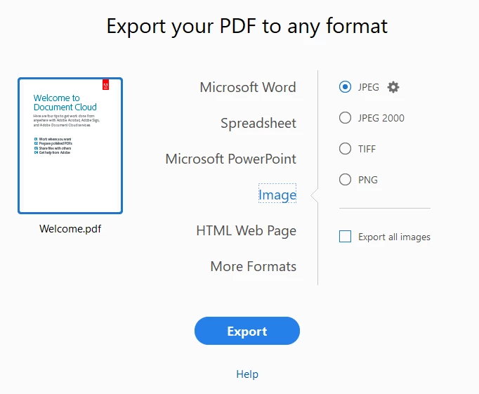 Acrobat Jpg Export funktioniert nicht.