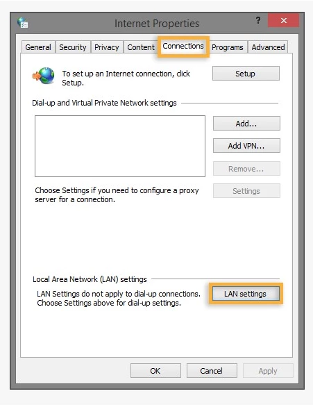 - In the Connection panel, click LAN settings.
