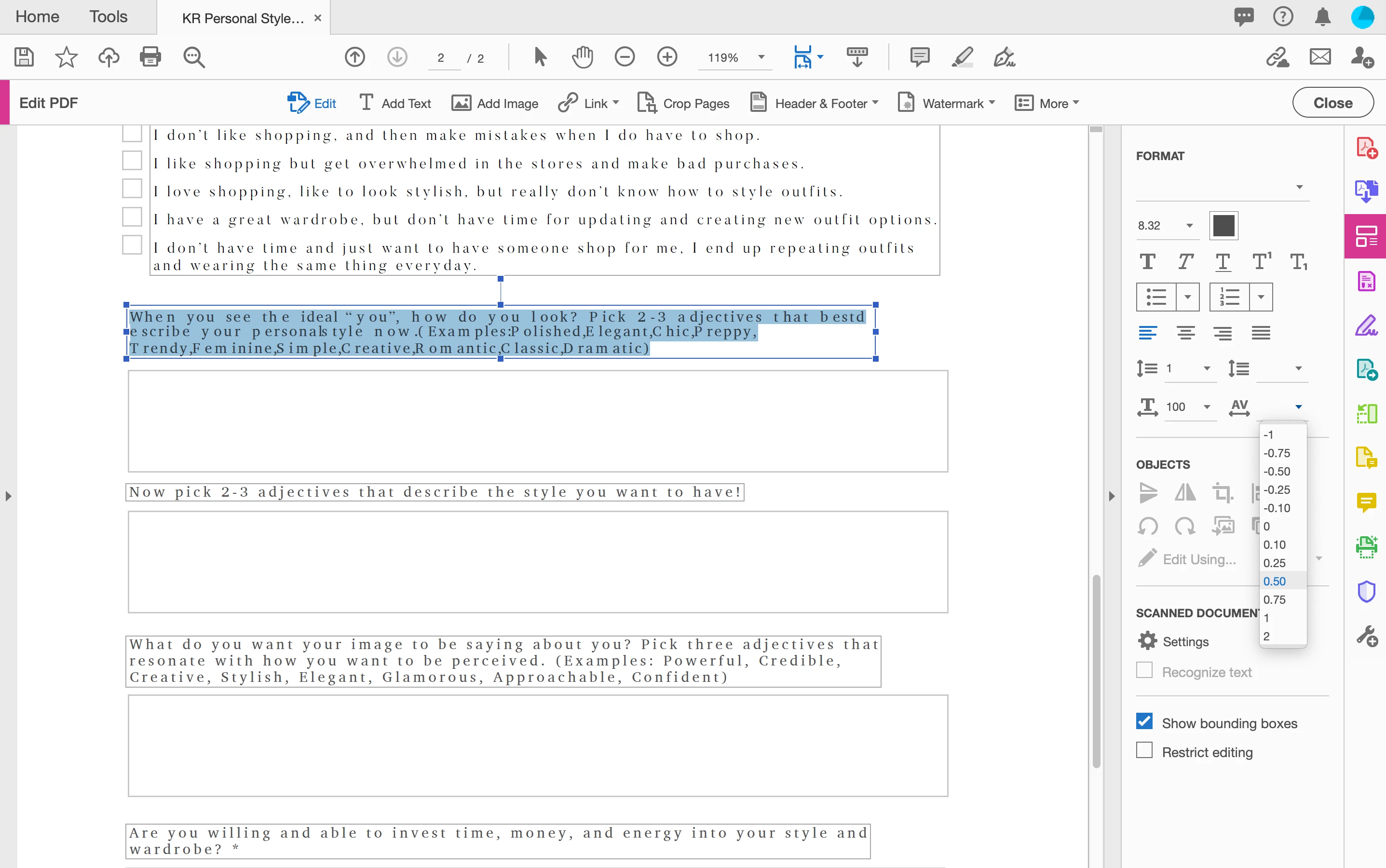 Acrobat no longer selecting and editing text. Text overlaps itself