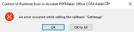 “Custom UI Runtime Error in Acrobat PDFMaker Office COM Addin. (X) An error occurred while calling the callback: “GetImage.”
