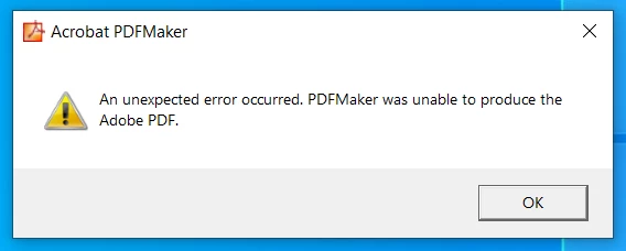 Acrobat PDFMaker unable to produce the Adobe PDF