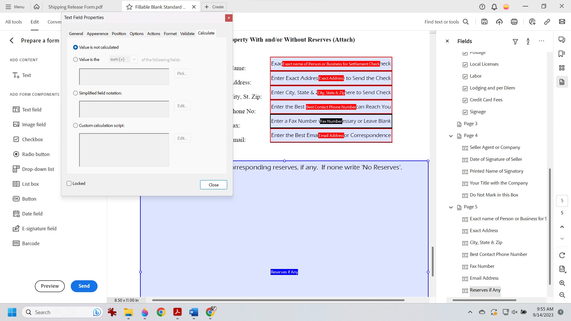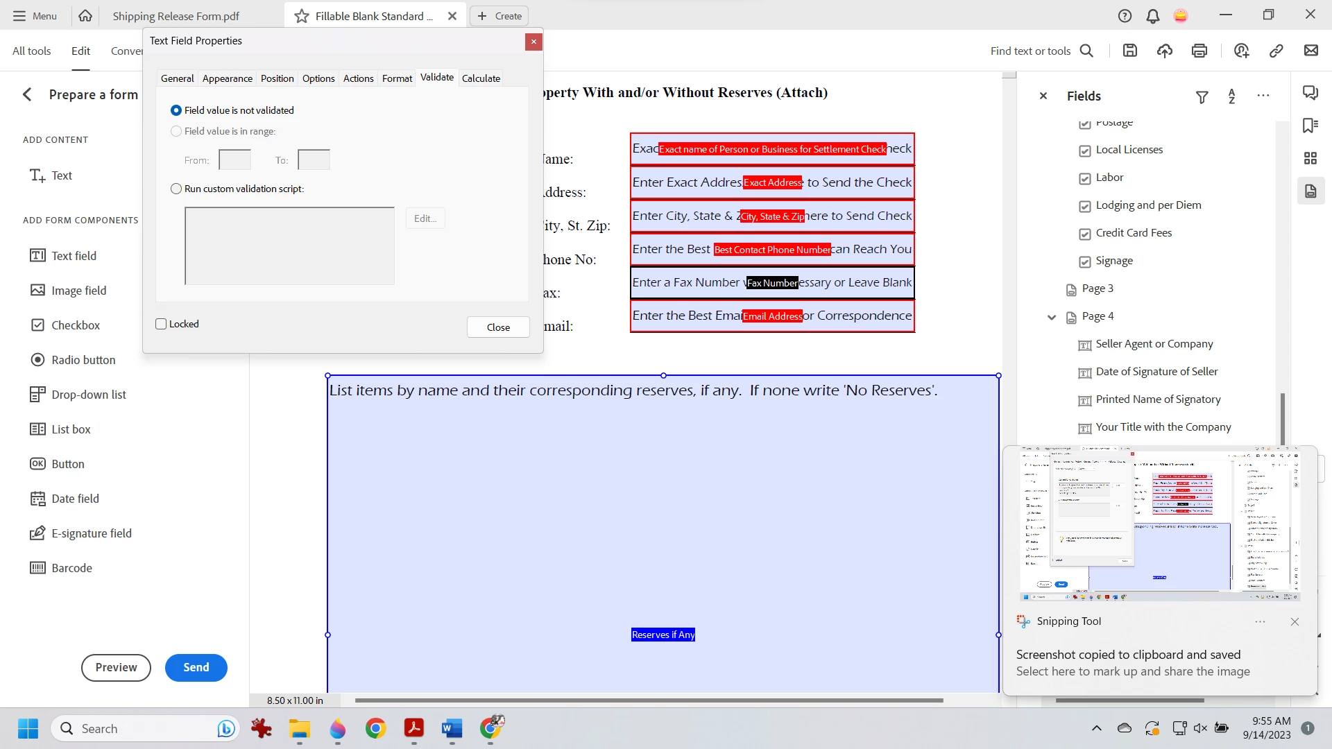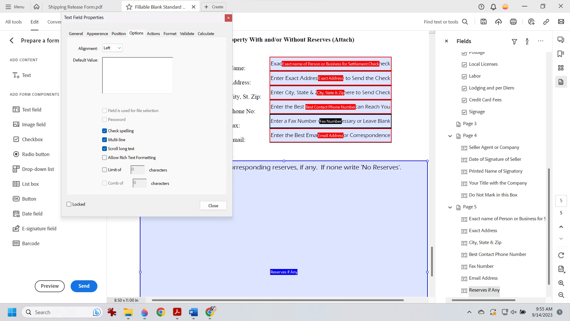 Acrobat Prepare Form Help Instructional Text If Left Alone Should NOT Print