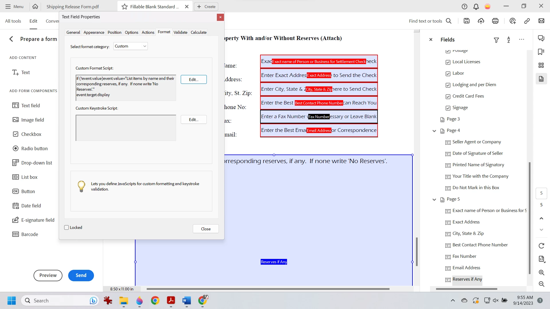 I am using the prepare form tool in acrobat.  Obviously I am a beginner,  I want the field text box to display instructional text, however if the user leaves the box untouched, I do NOT want the instructional text to print I want it to be blank.  I want this for two reasons, sometimes we print this form and fill it out by hand so we need the boxes if untouched to NOT print.  However if we enter data into the box, we want it to print.  Can anyone help me with this function?  I have attempted to decipher javascript but I am having difficulty.  If there is a SPECIFIC set of steps I can take to make this program do precisely what I am asking, please let me know where I can find them or if anyone knows what to do and would be willing to provide them, I would be so appreciative I will donate $25 to a charity of your choosing.