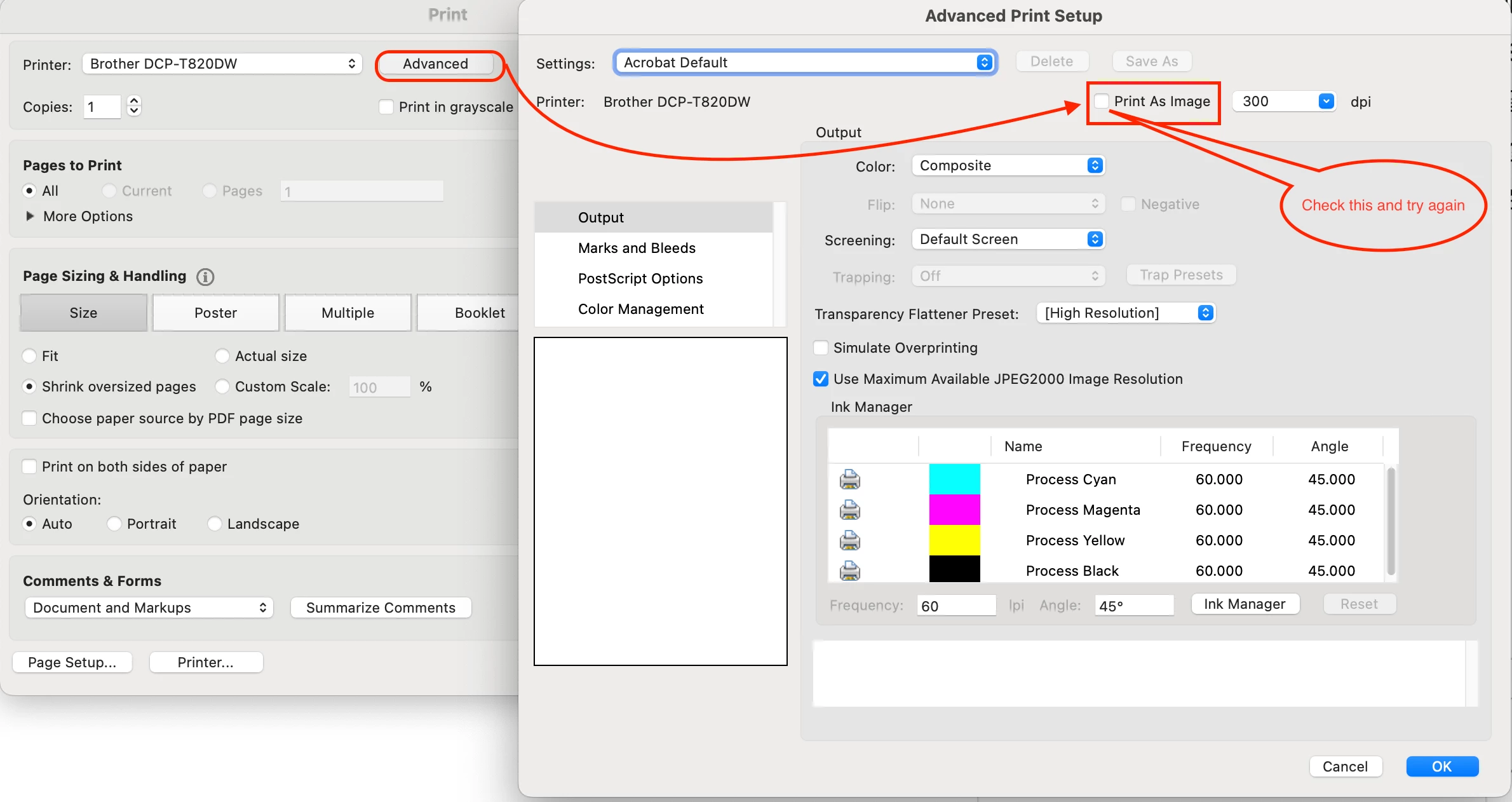 Acrobat Print Out Problem in Projects