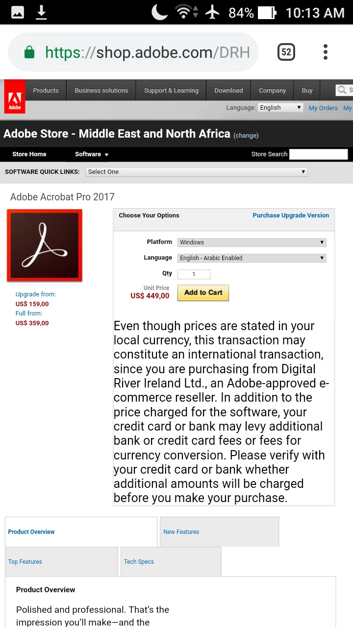 I'm going to buy Acrobat Pro 2017 Perpetual, Teachers edition. But I've a concern, I found that you Adobe sells English version with Arabic Enabled, I wanted to know more details about such specs and if my edition would be Arabic enabled too or not, I don't want of course the GUI to be in any other language but English.