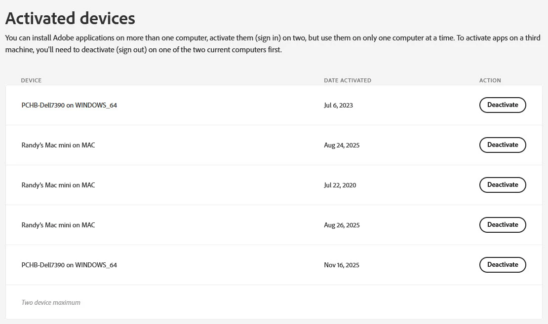 when you buy Adobe Acrobat Pro 2024 (Classic) for macOS, how many activations are you allowed?