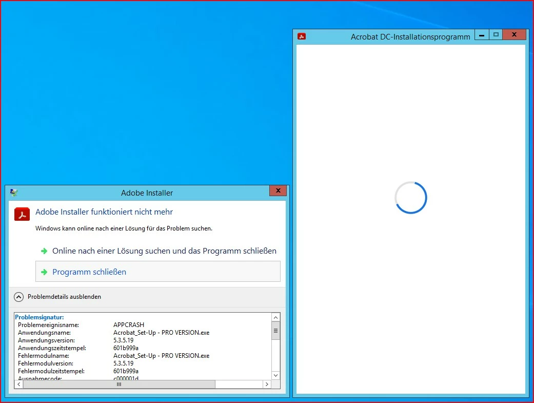 Acrobat Pro DC crashes on installation Win 2012 R2 Terminalserver