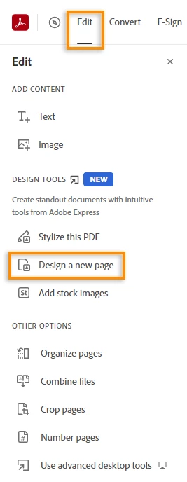 Acrobat Pro "Design a new page" disappeared