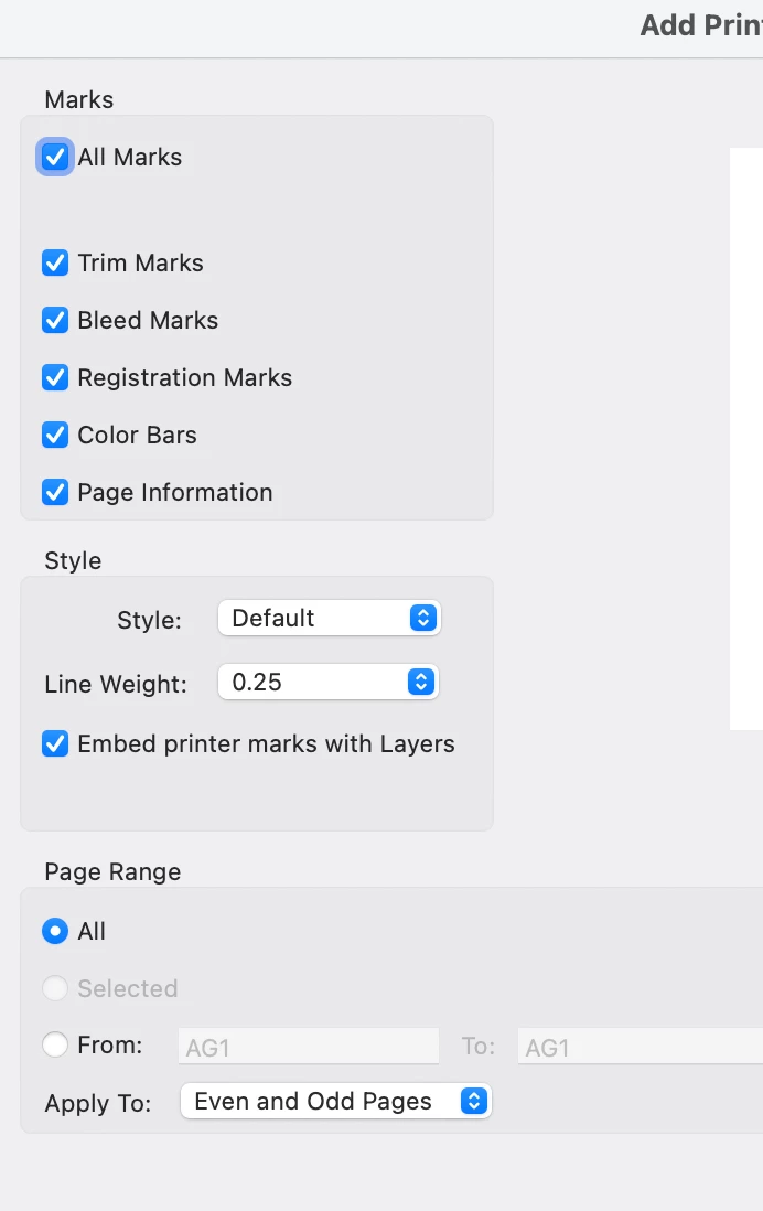 acrobat pro is not adding printers mark. After adding Marks on acrobat no marks are visible. Is the a view setting I have to adjust? Please help. Thanks