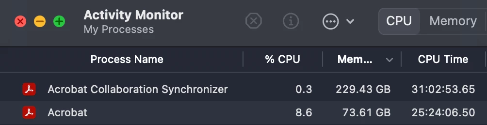 Acrobat Pro Memory Leak on M1 Mac