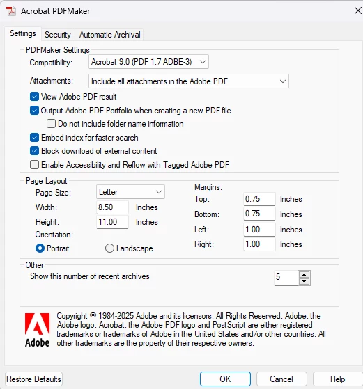 2. Acrobat PDF Maker plugin is enabled in Outlook. For more information on PDFMaker on Windows machine: https://adobe.ly/4oechAb;