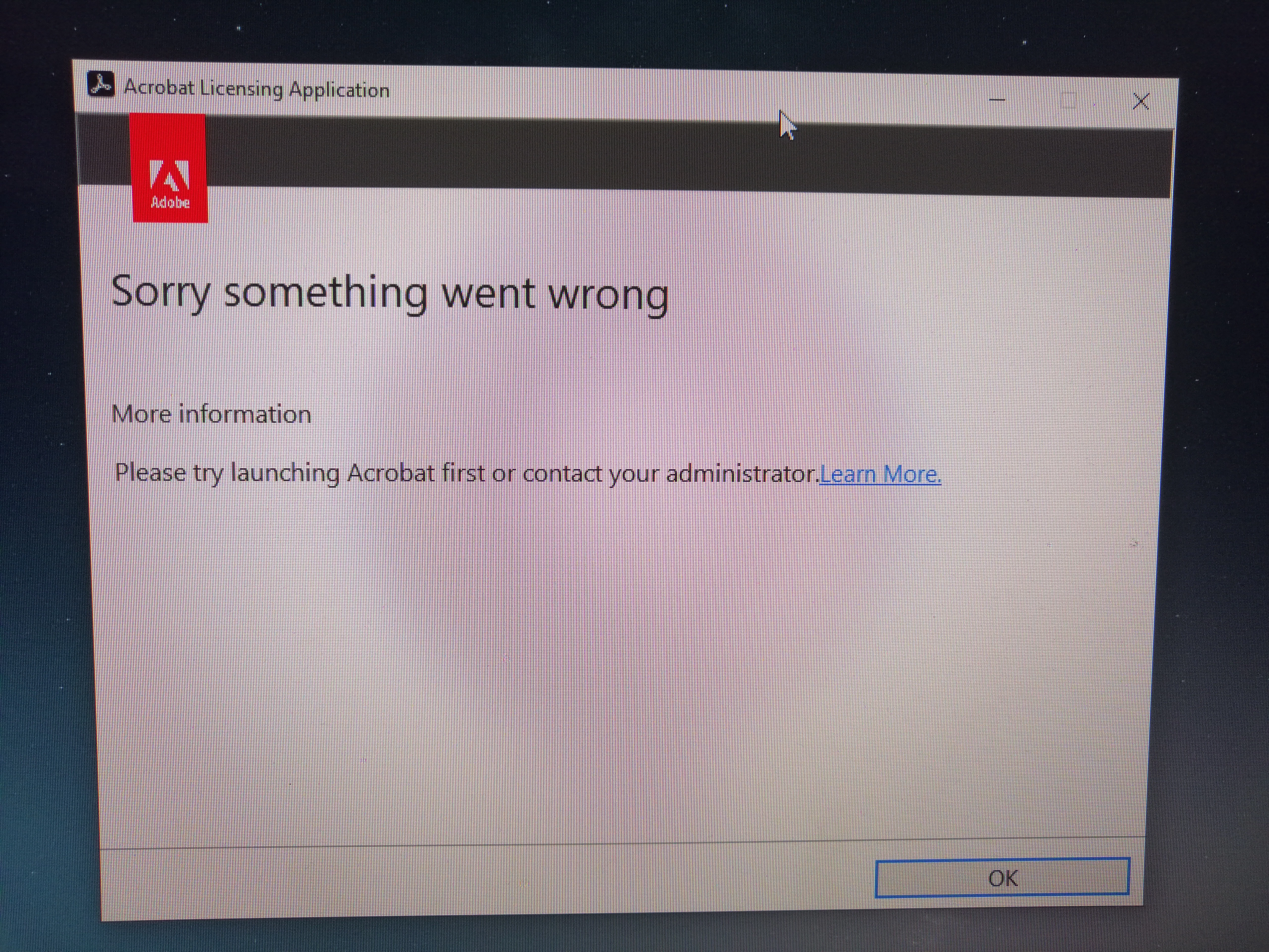 Acrobat Pro Sign In Windows 10 Pro error sorry something went wrong