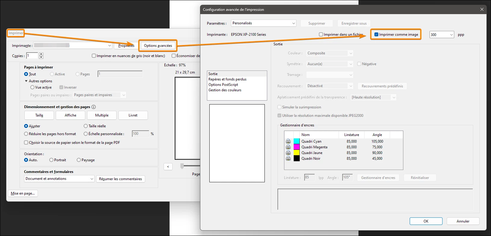 Depuis quelques temps, lorsque je veux imprimer des pdf avec Acrobat Pro, celui-ci semble convertir le police originale en quelque chose d'illisible lors de l'envoi vers mon imprimante (qui n'est pas truetype).
