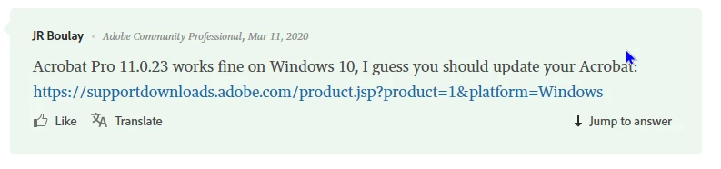 Acrobat Pro XI 11.0.23 stopped working in Word