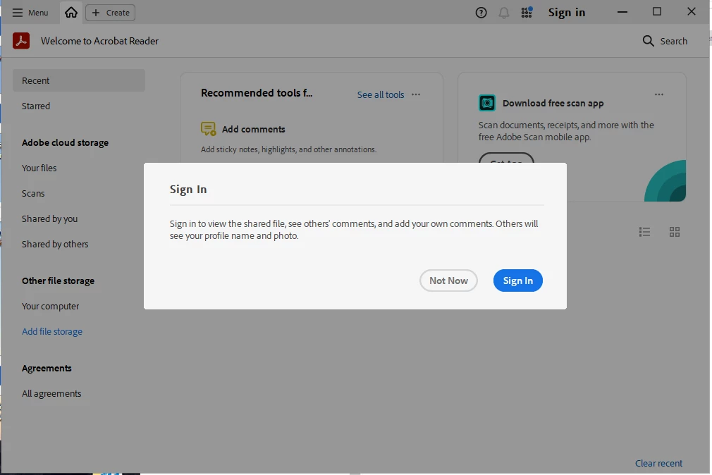 We use Acrobat Reader for review and commenting of a shared file that I sent out with my Adobe Acrobat DC account. Many of the reviewers don't and won't have Adobe accounts. They are being prompted to sign in when opening the shared file in Acrobat Reader. How can they open the file in Reader without needing to sign in to leave comments?
