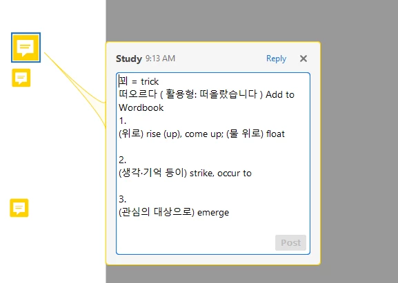 I make sticky notes in Korean, and while hovering it shows me rubbish. If I click on it, it shows the actual text. First picture of hovering and second picture on clicking.