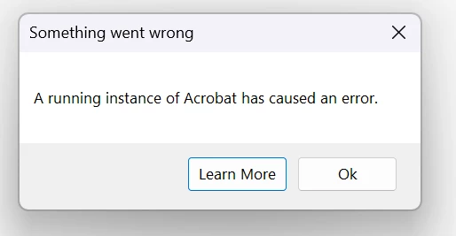 My other CC apps appear to work ok but I can't open pdfs on my Windows. I've tried uninstalling and reinstalling the app but it stilll won'd work. I get the following error message.