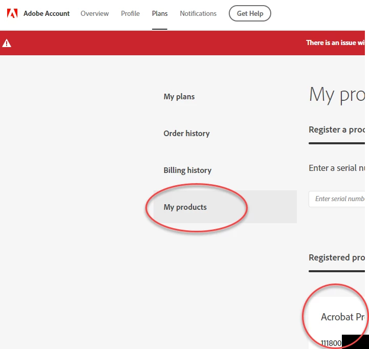 Thank you but I obviously do not have the CD. I can access my account but I cannot locate the serial number in the account. Can you provide me a link to download Acrobat X Pro and suggest where in my account I can find the serial number, please?