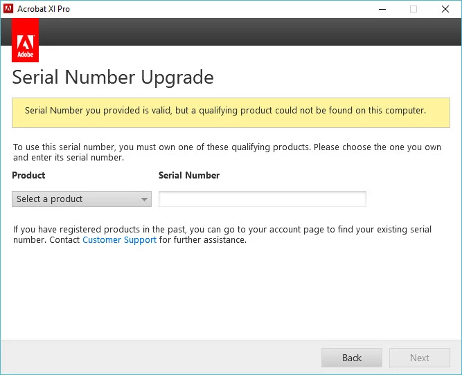 Acrobat XI Pro reinstall-Product Key Invalid..