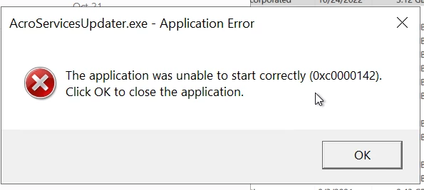 The application was unable to start correctly (0xc0000142). Click OK to close the application.