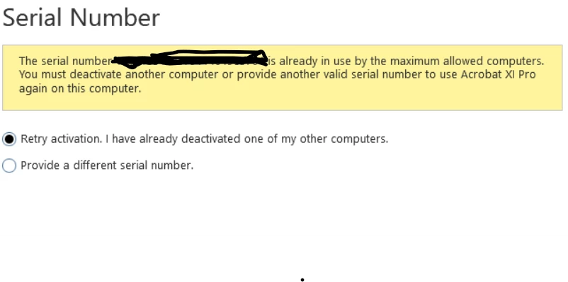 I have a new computer and have already deactivated this product (Adobe Pro XI) on my old computer but keep getting the message below: