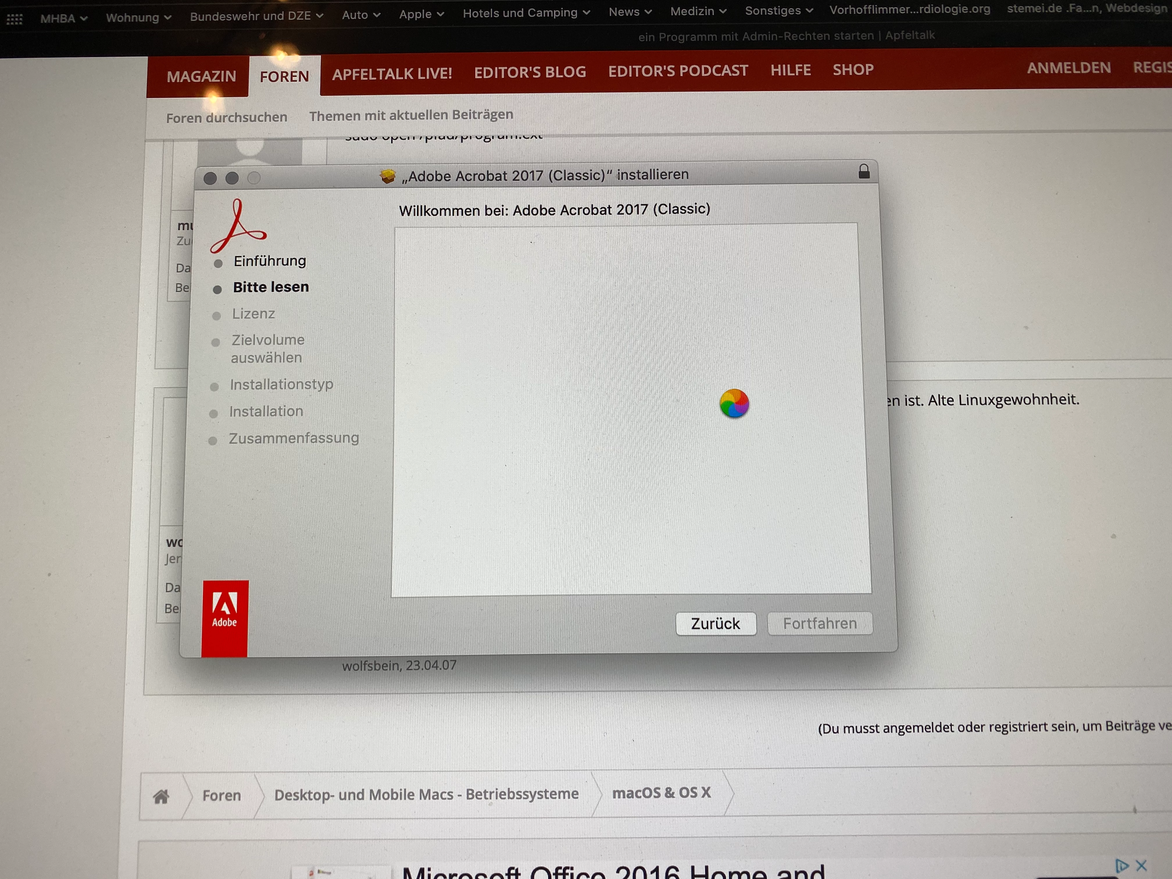 I bought a Student and Teacher version of Acrobat Pro 2017 as download Version from a reseller to install on my new iMac running Catalina because my old Pro X isn't compatible with the 64 GB Apple requirement. I open the installer.pkg and press continue on the message about determining if the software can be installed. I then see the introduction and press continue taking me to the Read Me, and it gets hung there. Spinning beachball. No text populates the installer window and the go back button doesn't work. Even waiting 12hours didnt help. Have to force quit. Any known fixes? I didnt get a 19 numbers Product Number to install the Download Version of Acrobat. So I need help!