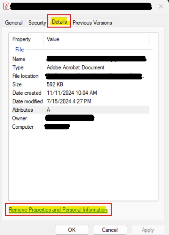 • Press OK in the "Permissions for MyFile.pdf dialog and hit ok