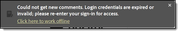 Here are examples of screens you may see when using Adobe Acrobat to open a Shared Review PDF demonstrating the problem.